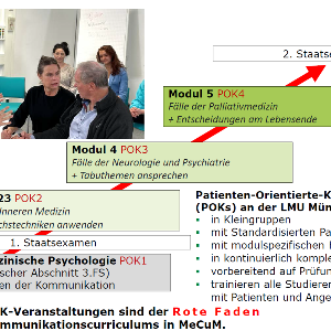 Mit der Implementierung des longitudinalen Kommunikations-Curriculums an der Medizinischen Fakultät der LMU München (KomMeCuM) ist es gelungen, die kommunikationsrelevanten Lehrveranstaltungen zwischen den vorklinischen und klinischen Studienabschnitten inhaltlich zu vernetzen und aufeinander abgestimmt und aufbauend zu unterrichten.